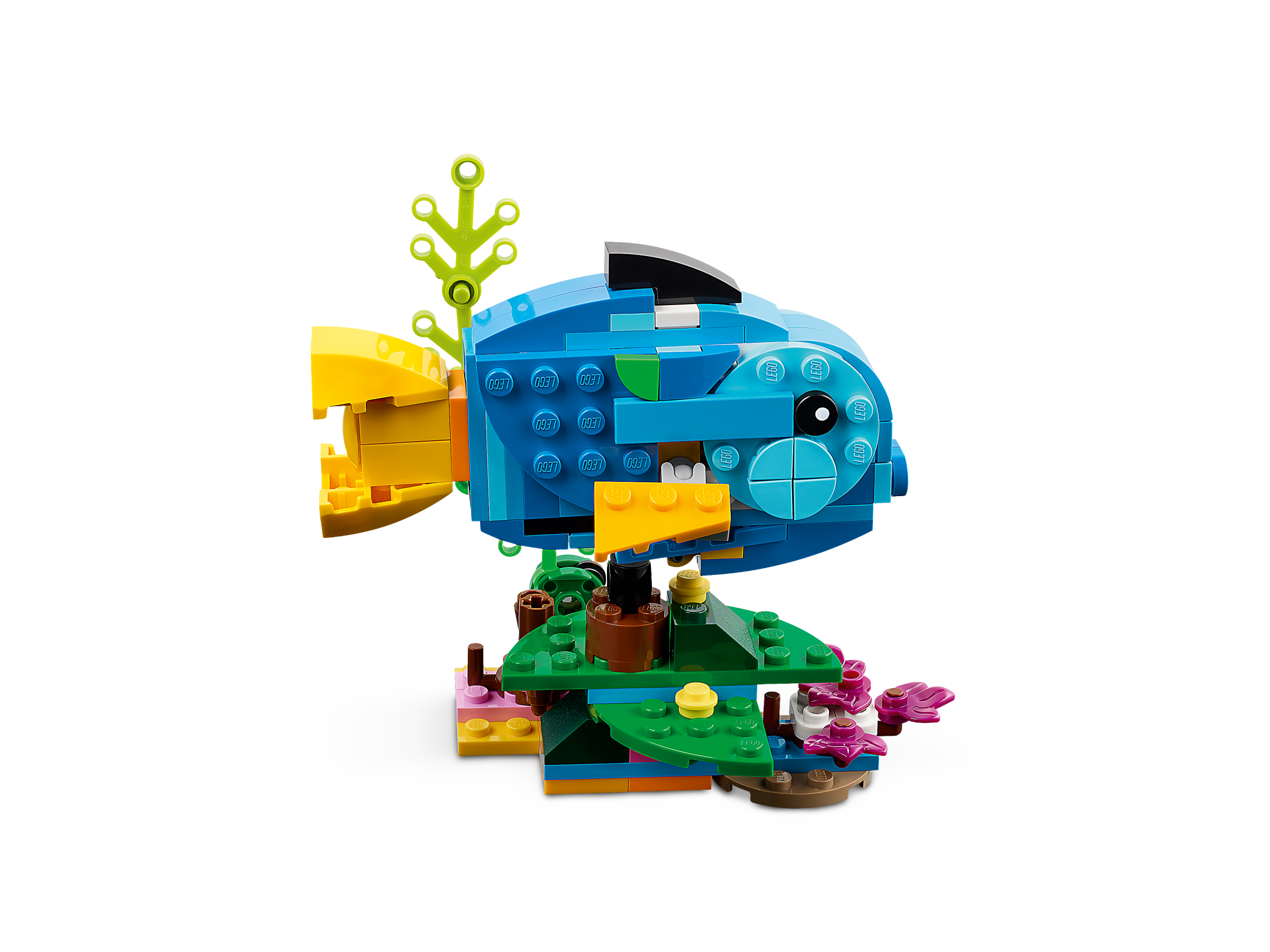 Kids have the chance to build 3 different exotic animal toys with this fantastic LEGO 3in1 set. They can build a colorful parrot sitting on a tree branch or rebuild it into a playful fish swimming at the bottom of the sea or a cheeky frog that can move its legs.