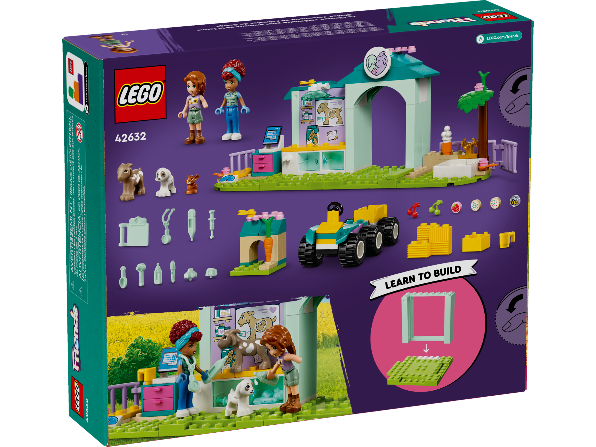 Inspire kids aged 4 years old and over to care for animals with this LEGO® Friends Farm Animal Vet Clinic (42632) toy set. This kit helps kids learn to build and comes with a buildable vet clinic, 2 mini-dolls, 3 animal figures and vet accessories to inspire imaginative play.