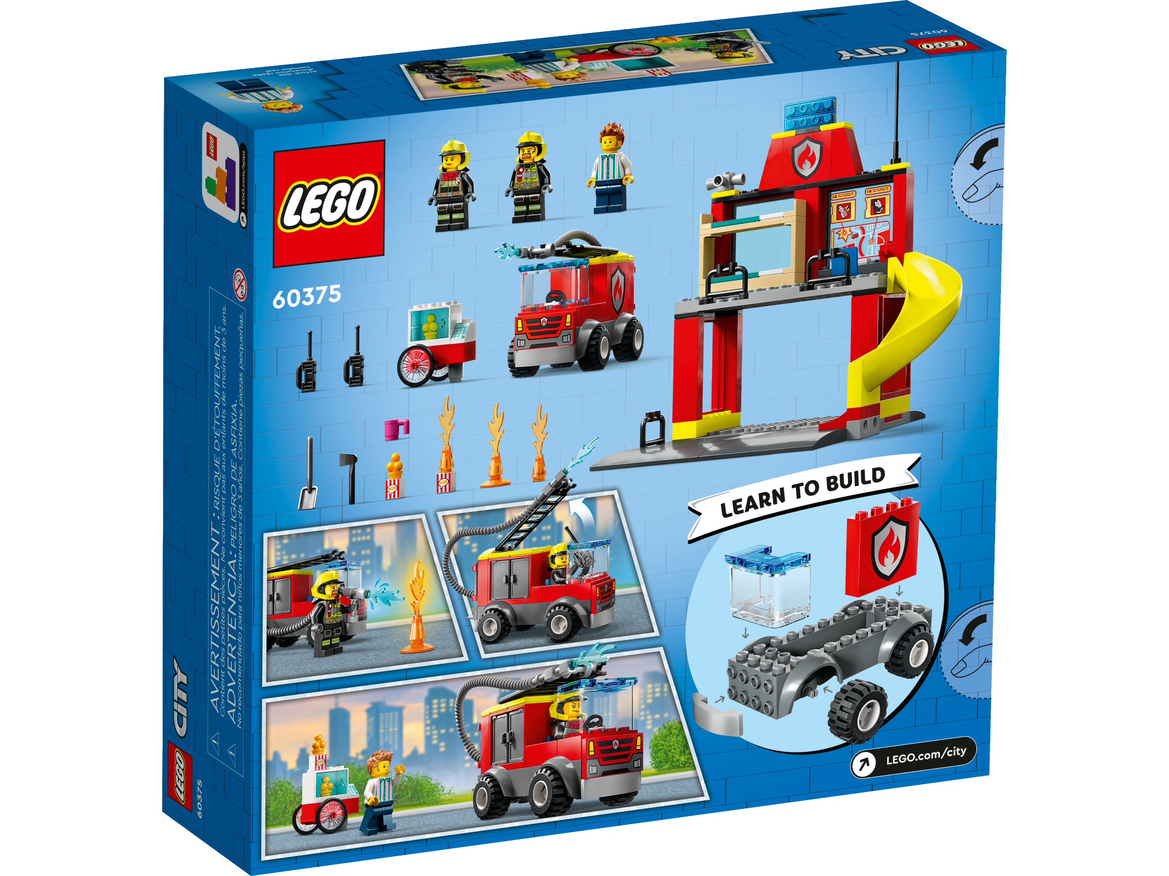 Spark kids’ imaginations with the LEGO® City Fire Station and Fire Engine (60375) playset, featuring a toy fire station with sleeping quarters, a garage and a fun emergency slide. Kids also get a cool fire engine with a flexible hose and roof ladder. Just add the popcorn cart, a few LEGO flames and the vendor and firefighter minifigures for hours of action-packed play.