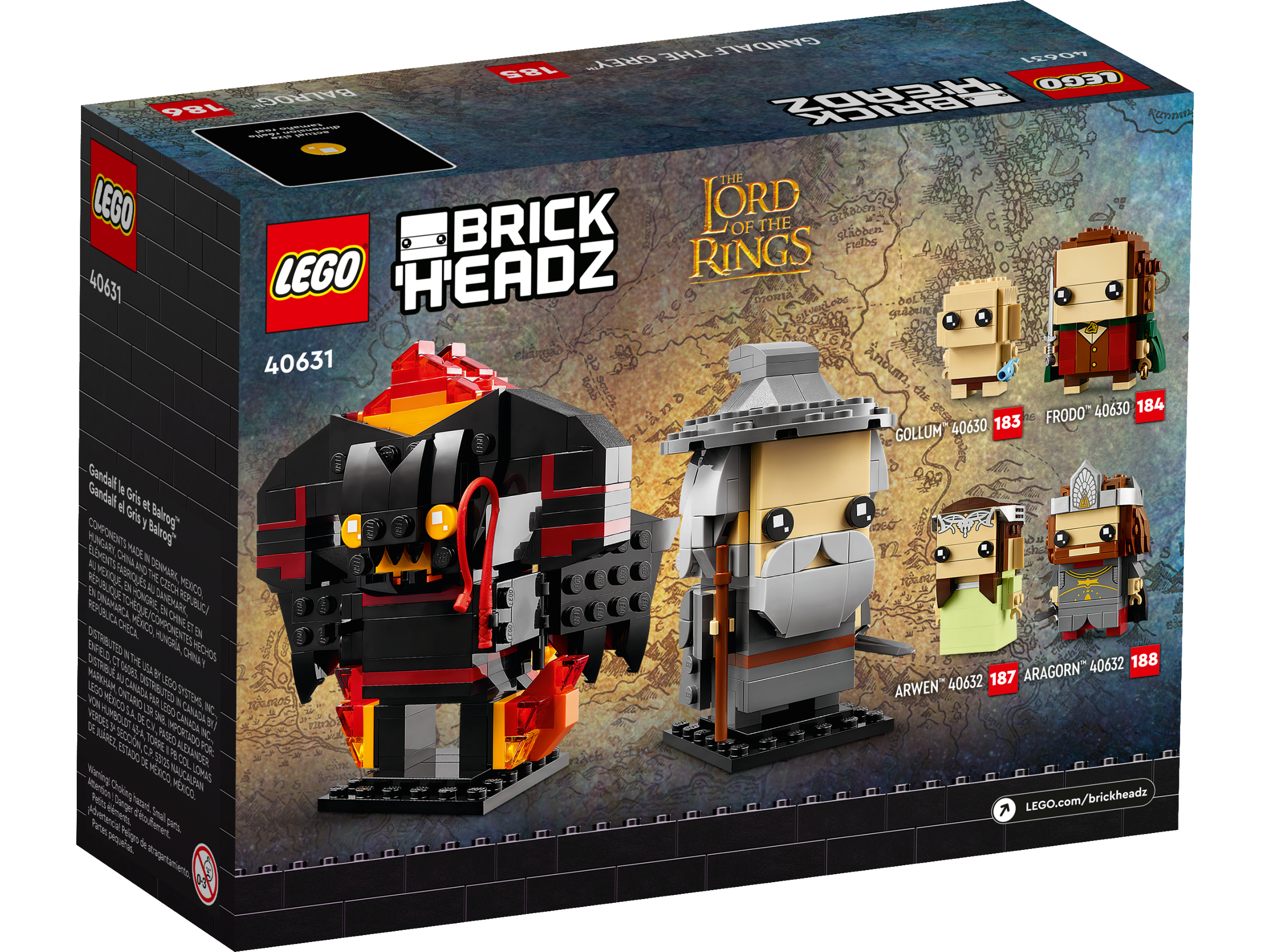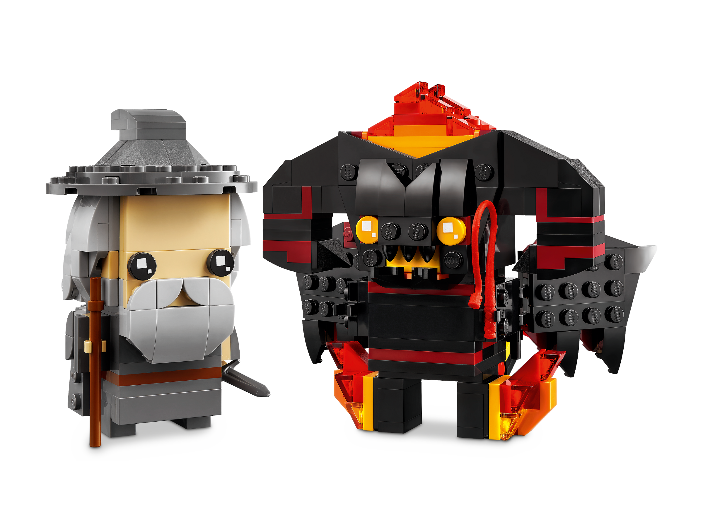 “You shall not pass!” Celebrate an iconic battle from The Lord of the Rings: The Fellowship of the Ring with this collectible LEGO® BrickHeadz™ Gandalf the Grey™ & Balrog™ building set (40631). Recreate iconic details of the wizard Gandalf the Grey and the flaming beast Balrog and display the buildable figures with pride. This set makes a magical treat, birthday present or holiday gift for The Lord of the Rings™ fans, LEGO builders and LEGO BrickHeadz collectors.