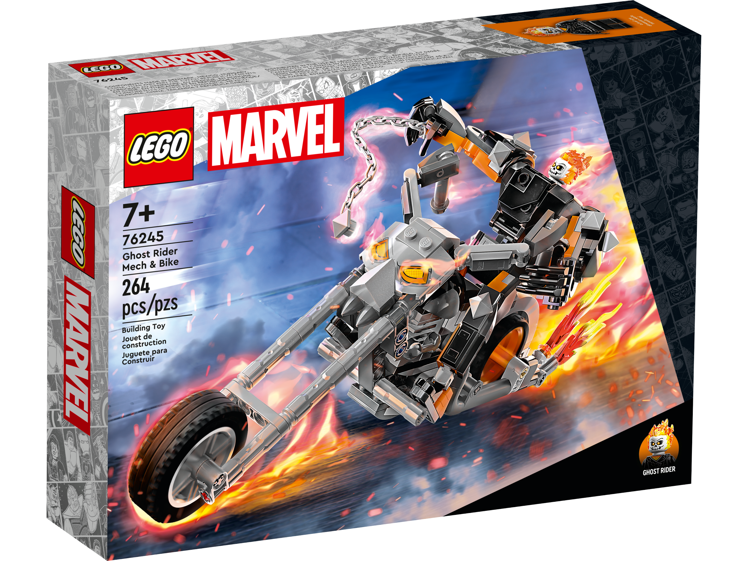 Treat Super Hero fans aged 7 and up to mega motorcycle adventures with the large-scale LEGO® Marvel Ghost Rider Mech & Bike (76245).