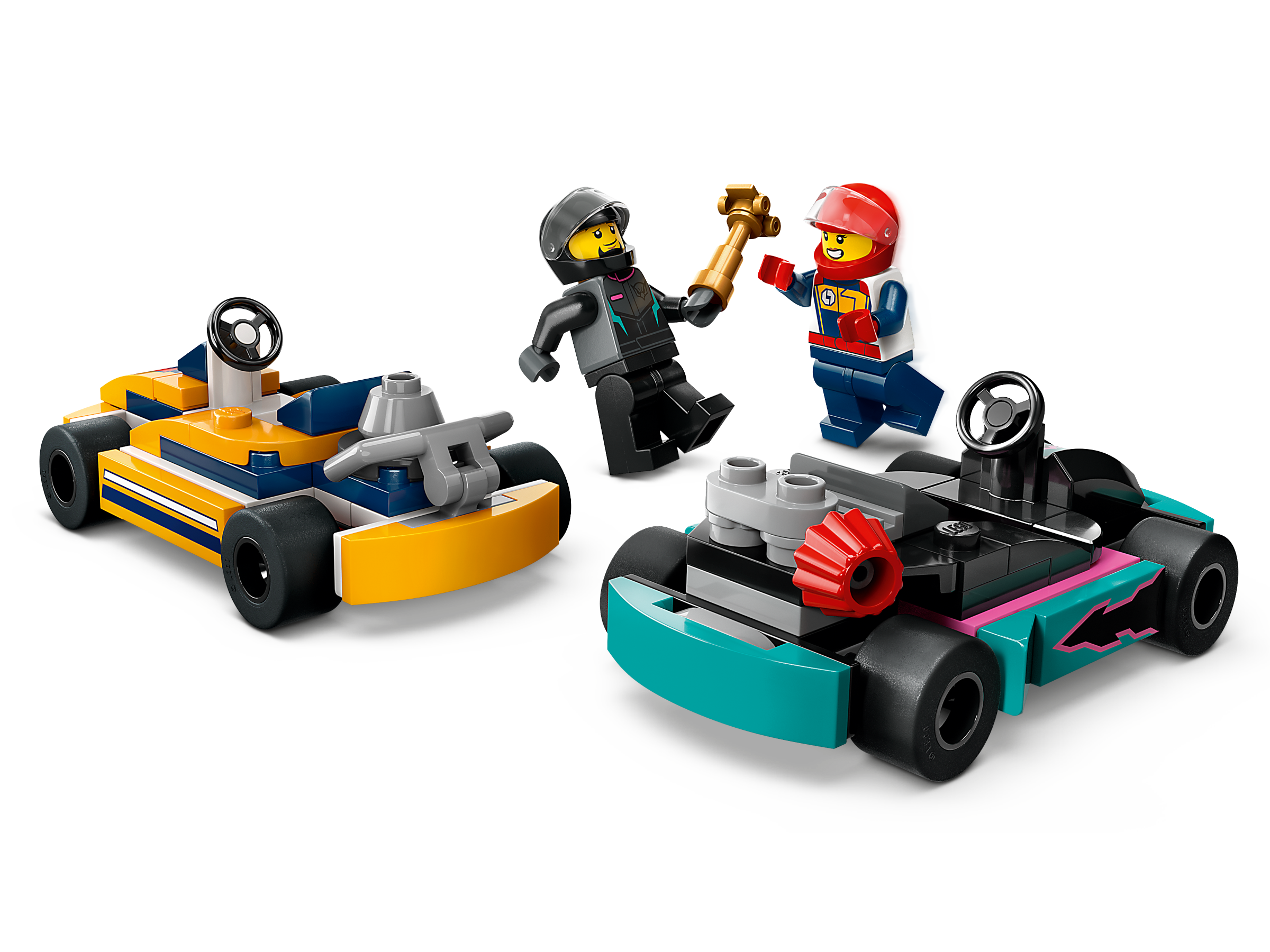 Fans of race car toys can enjoy endless action with this LEGO® City Go-Karts and Race Drivers (60400) toy vehicle playset for kids aged 5 and up. Little racers can choose between 2 driver minifigures before playing out exciting competitions with the orange and turquoise mini go-karts.This toy go-kart racing set makes a fun gift for kids and includes an easy-to-follow printed building guide, with digital instructions available in the LEGO Builder app. Using this intuitive building companion, kids can zoom in and rotate sets in 3D to visualize models from all angles as they build. The app also lets them track their progress and explore and save virtual playsets.Children grow up surrounded by amazing vehicles and machines and with LEGO City building sets they explore them up close with realistic models and fun characters that inspire open-ended, imaginative play without limits.