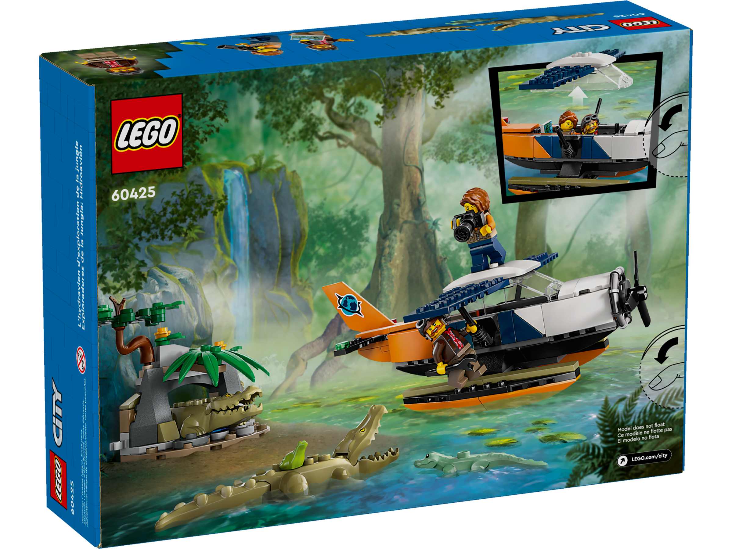 Surprise your little adventurer with this LEGO® City Jungle Explorer Water Plane (60425) playset for ages 6 and up, featuring a toy seaplane and a jungle cave setting. There are also 2 explorer minifigures, a frog figure and 3 crocodile action figures, including a baby croc, for imaginative play and storytelling.