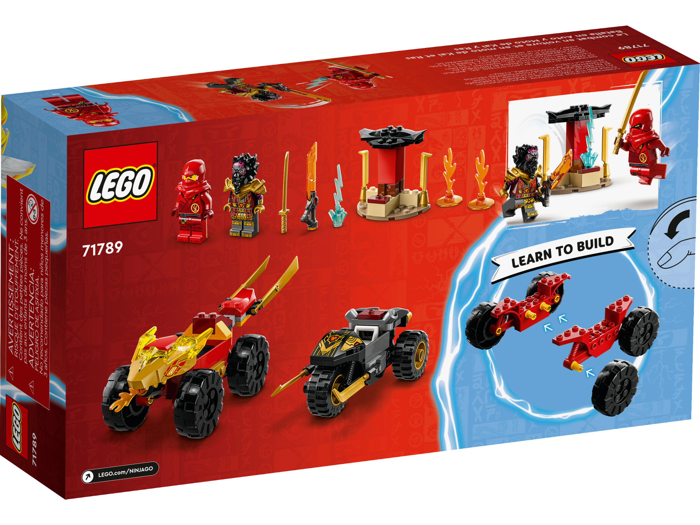 Kai and Ras’s Car and Bike Battle (71789) is the perfect way to introduce kids aged 4 to both the thrilling world of NINJAGO® and the joys of building with LEGO® bricks. The fantastic playset includes a dragon car, an all-terrain vehicle, Kai and Lord Ras minifigures, a piece of blue lightning in a display holder and 2 flame elements for kids to play out exciting action from the NINJAGO Dragons Rising TV series.