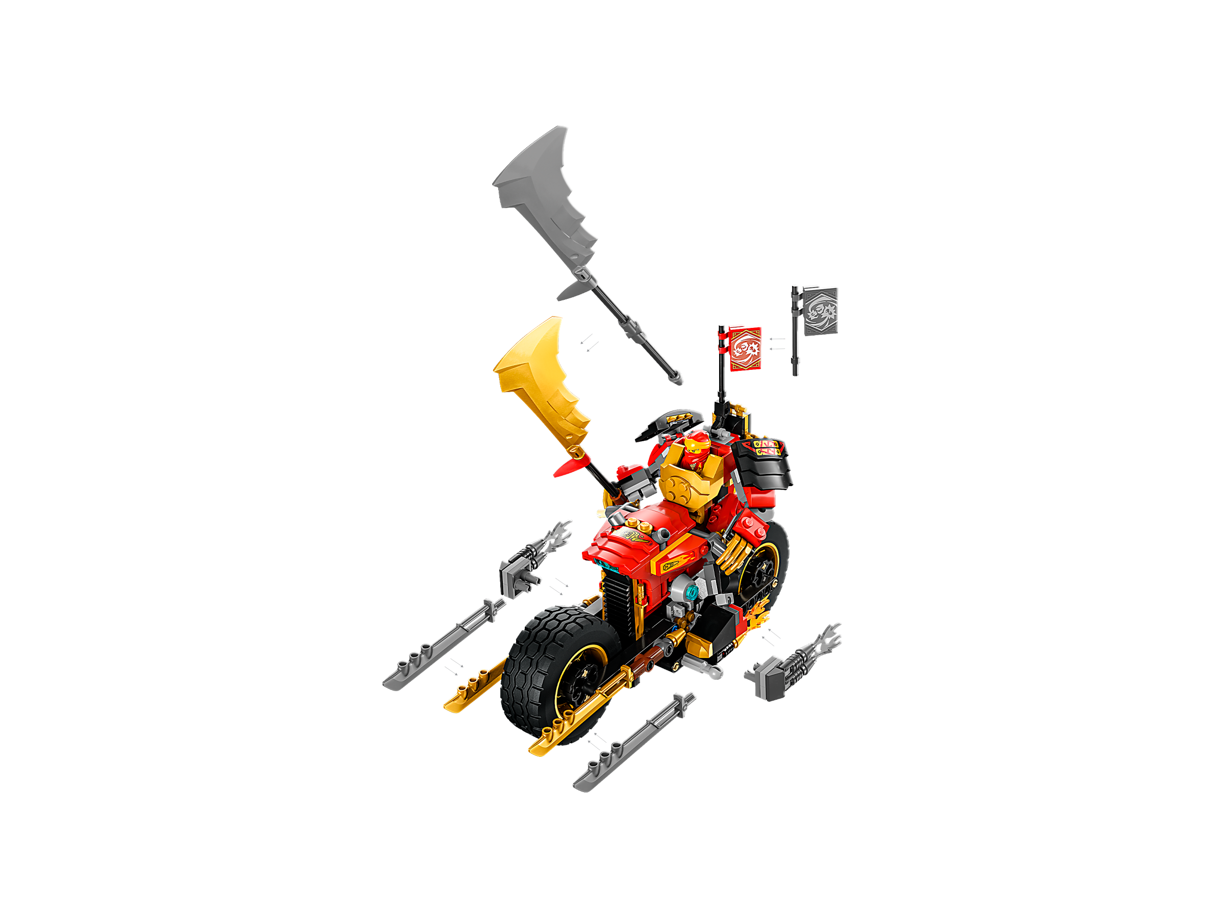Little builders aged 7 and fans of cool vehicles can stage their own good vs. evil fantasy showdowns with this action-packed Kai’s Mech Rider EVO (71783) playset. It features a posable mech and a cool motorbike, which can be upgraded into a bigger model by adding golden side panels and a large golden blade.
