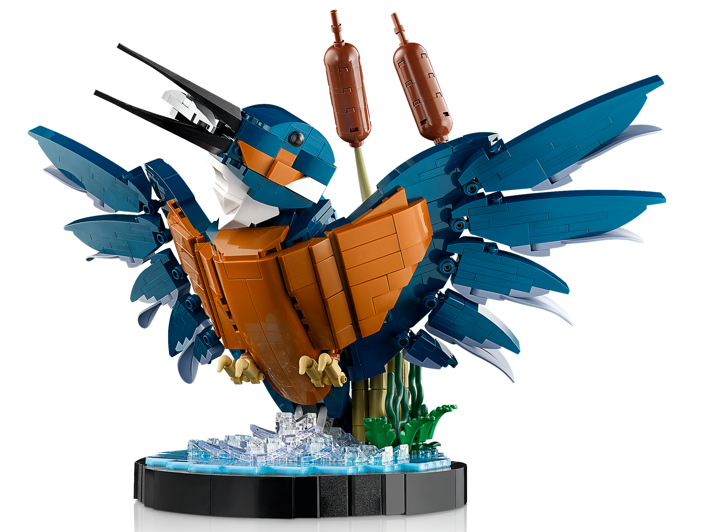 The kingfisher model depicts the bird, known for its striking plumage and remarkable hunting abilities, emerging from water with a fish catch. The water setting includes buildable reeds and doubles as a display stand. Position the bird’s head and claws to create your favourite pose before placing it on display for all to enjoy.