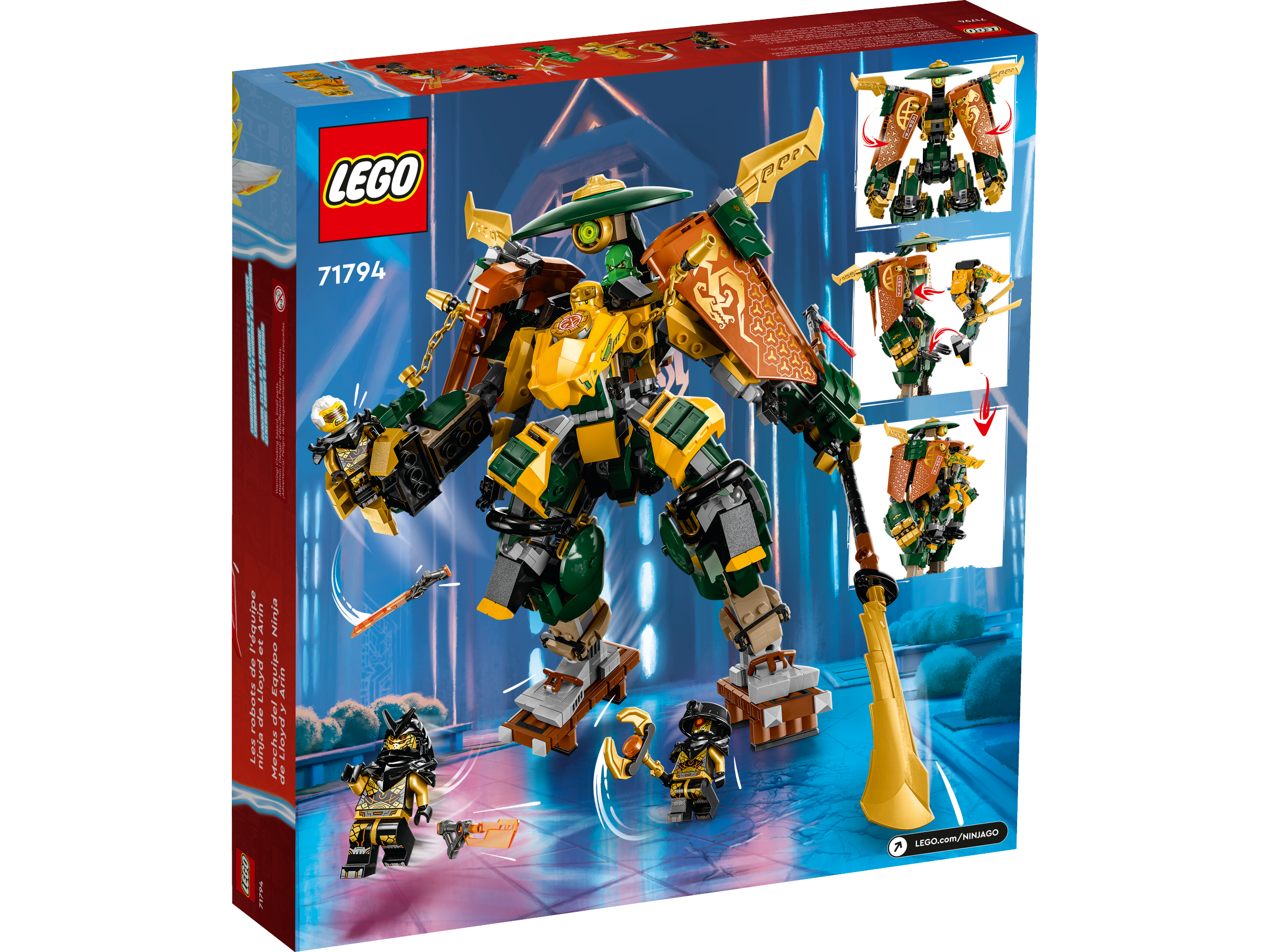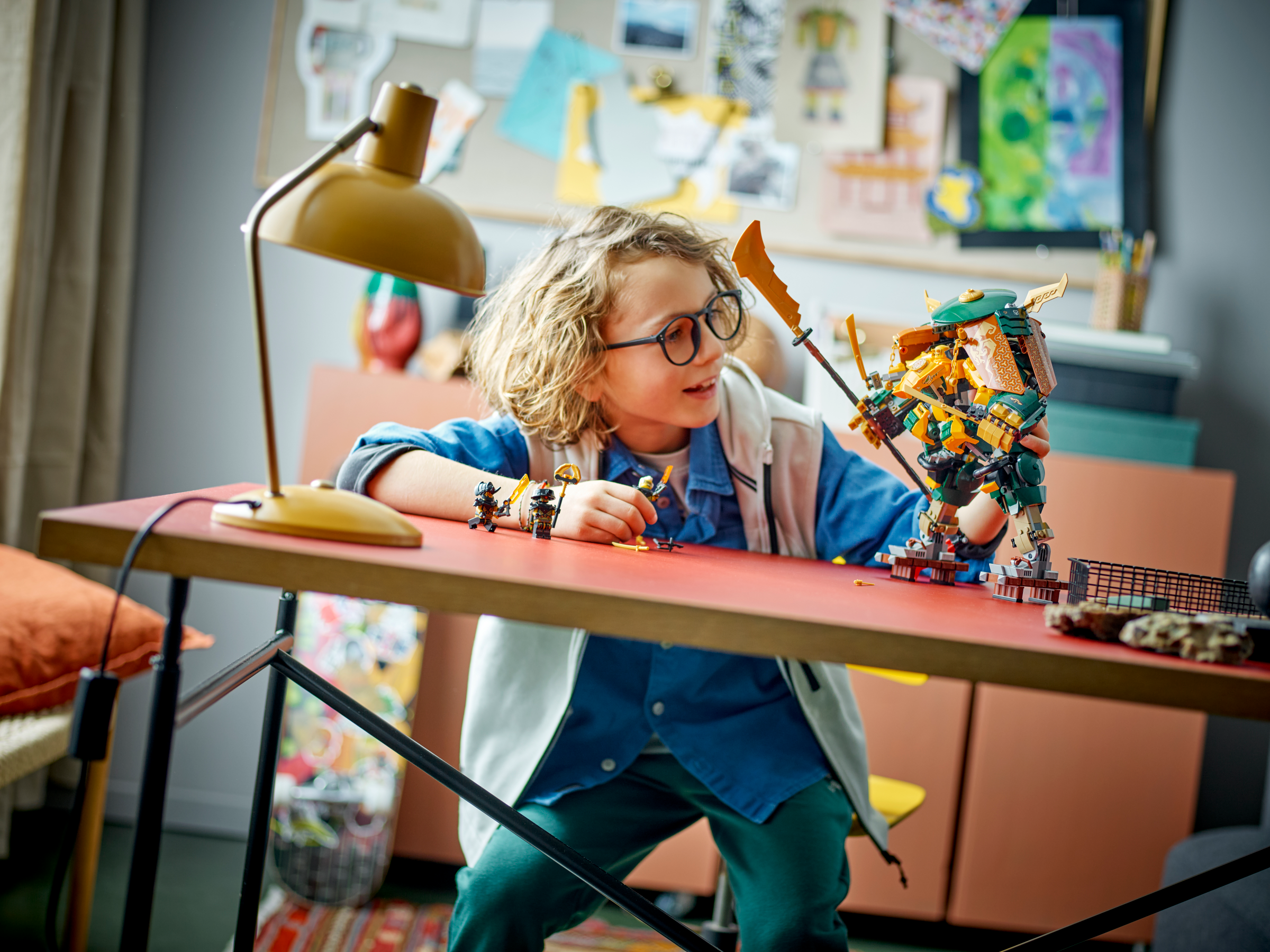 Kids aged 9 can play out exhilarating training and battle scenes from the NINJAGO® Dragons Rising TV series with Lloyd and Arin’s Ninja Team Mechs (71794). This never-before-seen building set features ninja master Lloyd’s and his student Arin’s posable mechs, which can be merged to create 1 larger and heavily armed mech for endless play opportunities.