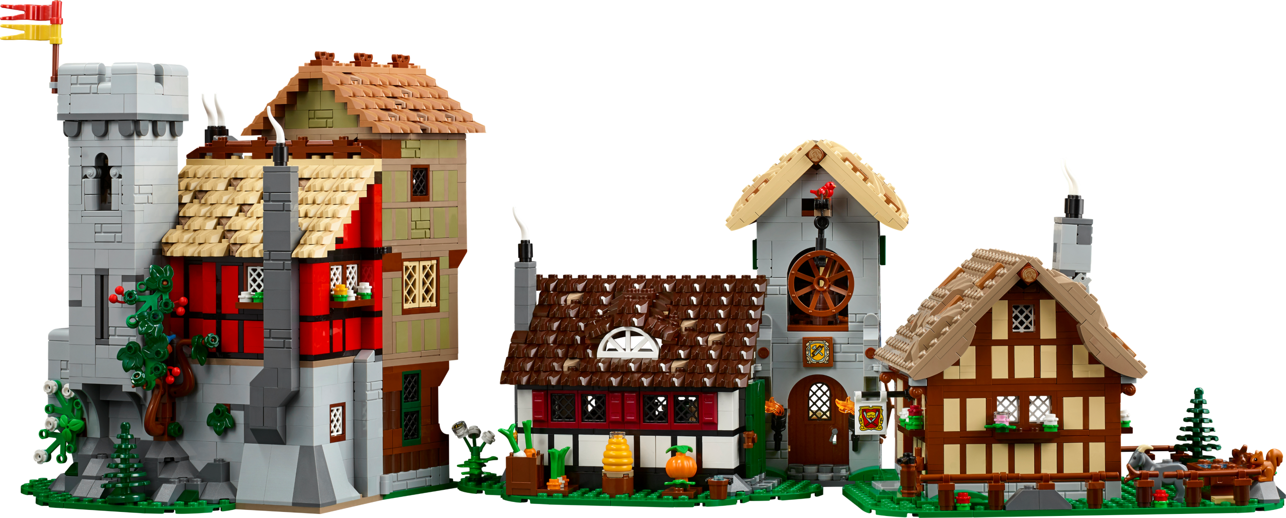 Enjoy an immersive solo or group building project as you recreate age-old objects and buildings with intricate interior and exterior detailing. Choose different configurations to create captivating displays and create fun storylines with a vintage lineup of minifigure characters, including a crook, carpenter, tax collector, tapestry weaver, shieldsmith and tower guard.