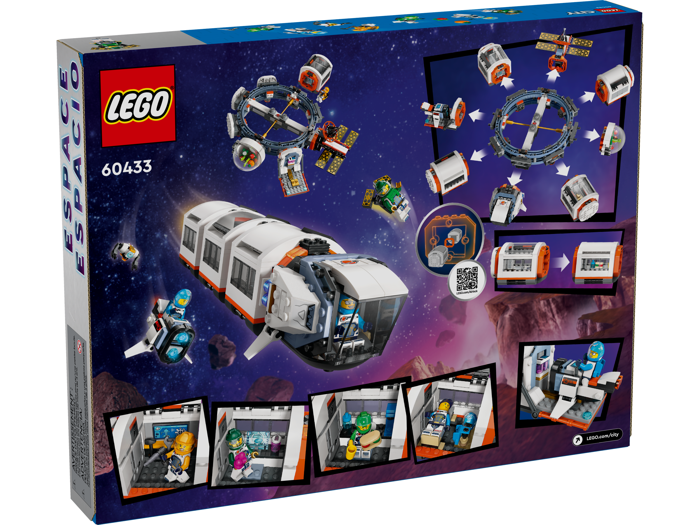 Treat a budding astronaut with the 7 LEGO® City Modular Space Station model playset (60433). This futuristic space ring is an orbiting anchor for docking spacecraft and room pod modules, including a satellite, space bike, shuttle, exploration science lab, repair workshop, kitchen, sleeping quarters and a biodome. Kids can switch the modules around to create their perfect space station and connect them to the shuttle to create a cool space train. The set also features 6 space crew minifigures for epic space adventures.