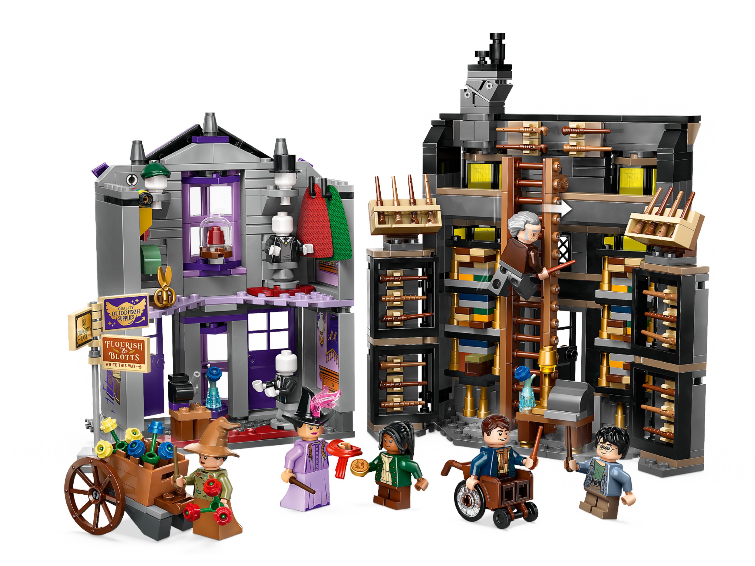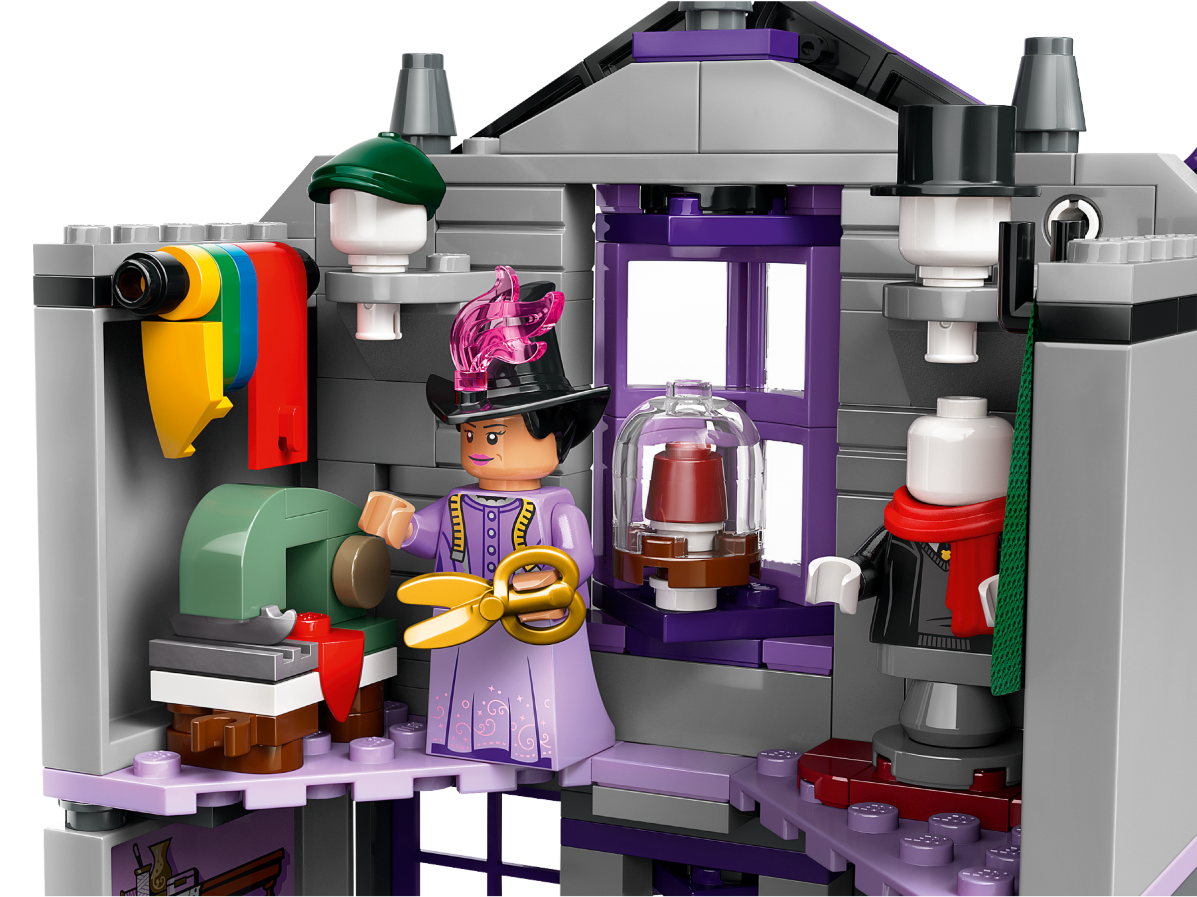Ollivanders and Madam Malkin’s can be connected to each other and to other LEGO Harry Potter Diagon Alley models (sold separately) to create an enchanting brick-built shopping street.