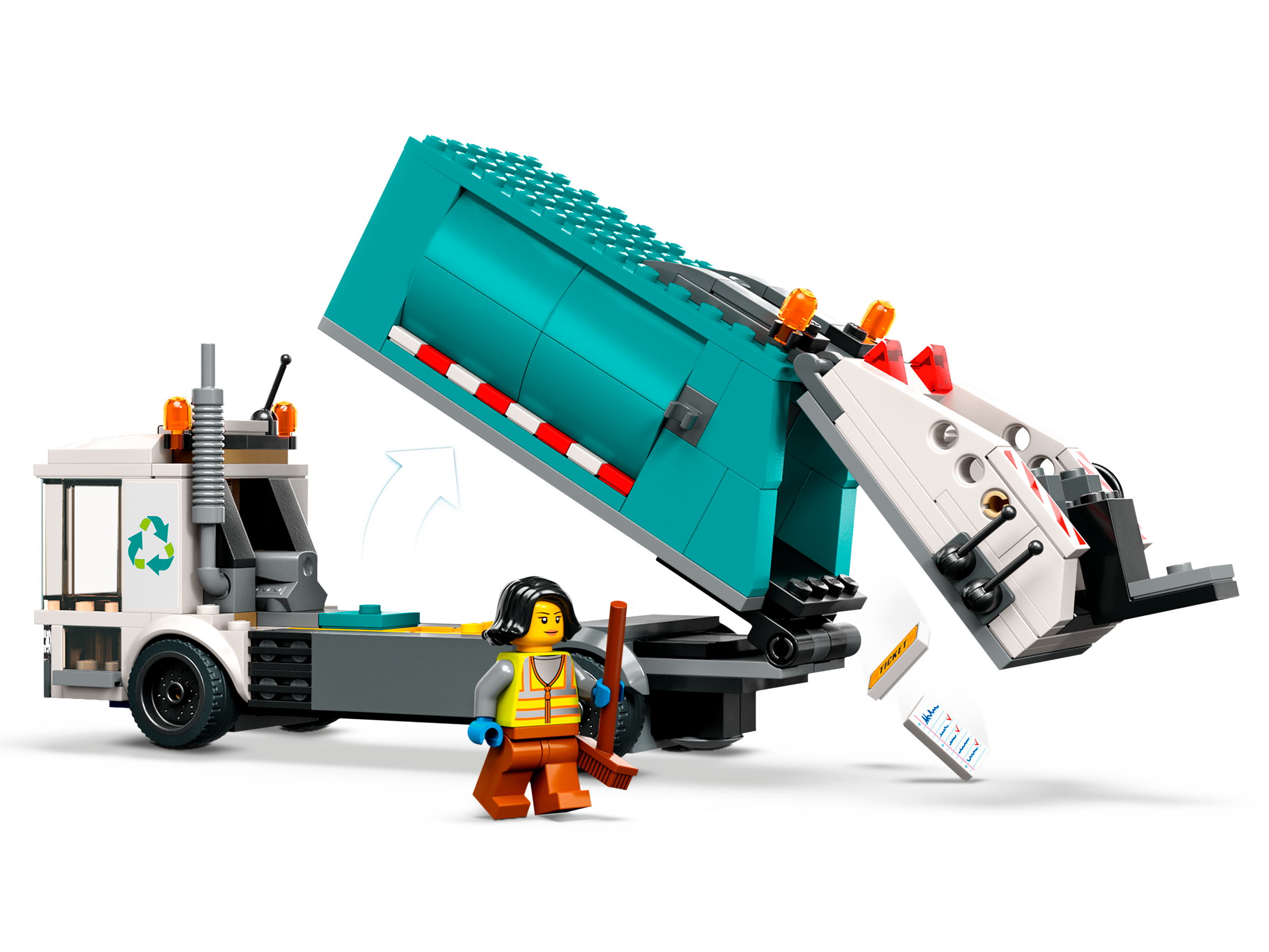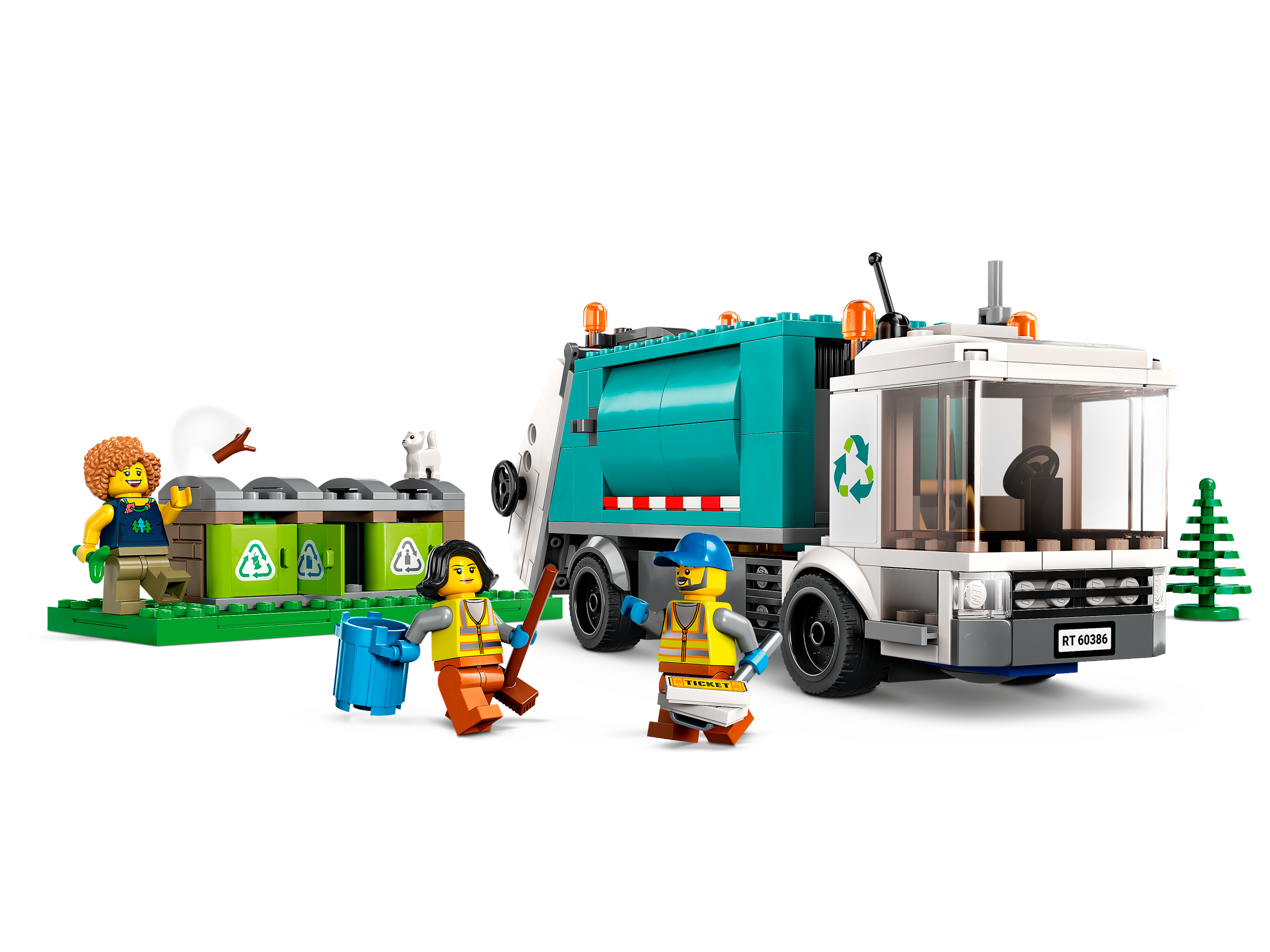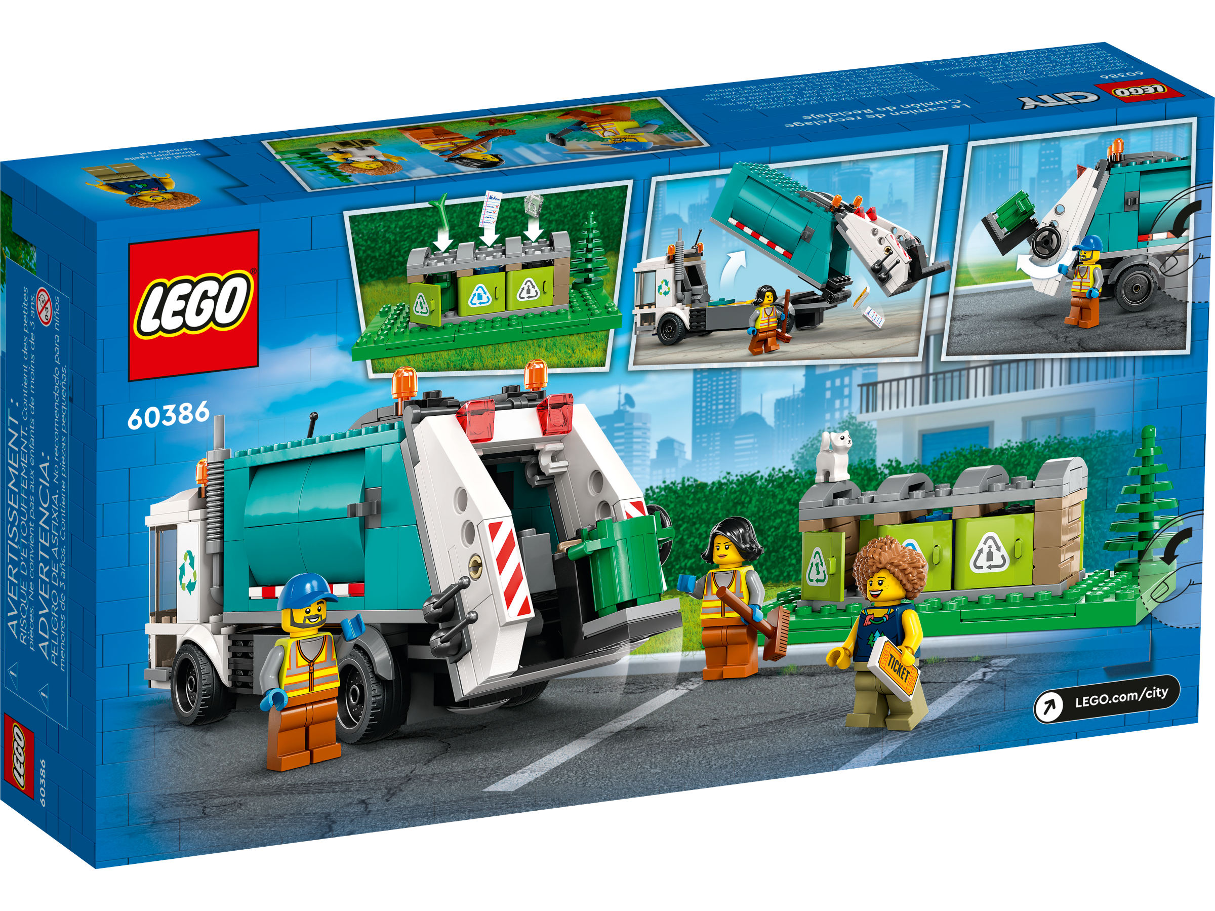 This 5 LEGO® City Recycling Truck (60386) set comes with lots of realistic features, including a recycling center with 3 containers. The truck features a tipping platform for emptying the containers and a raisable flatbed for offloading. Just add the 3 minifigures and cat figure and let the fun begin.
