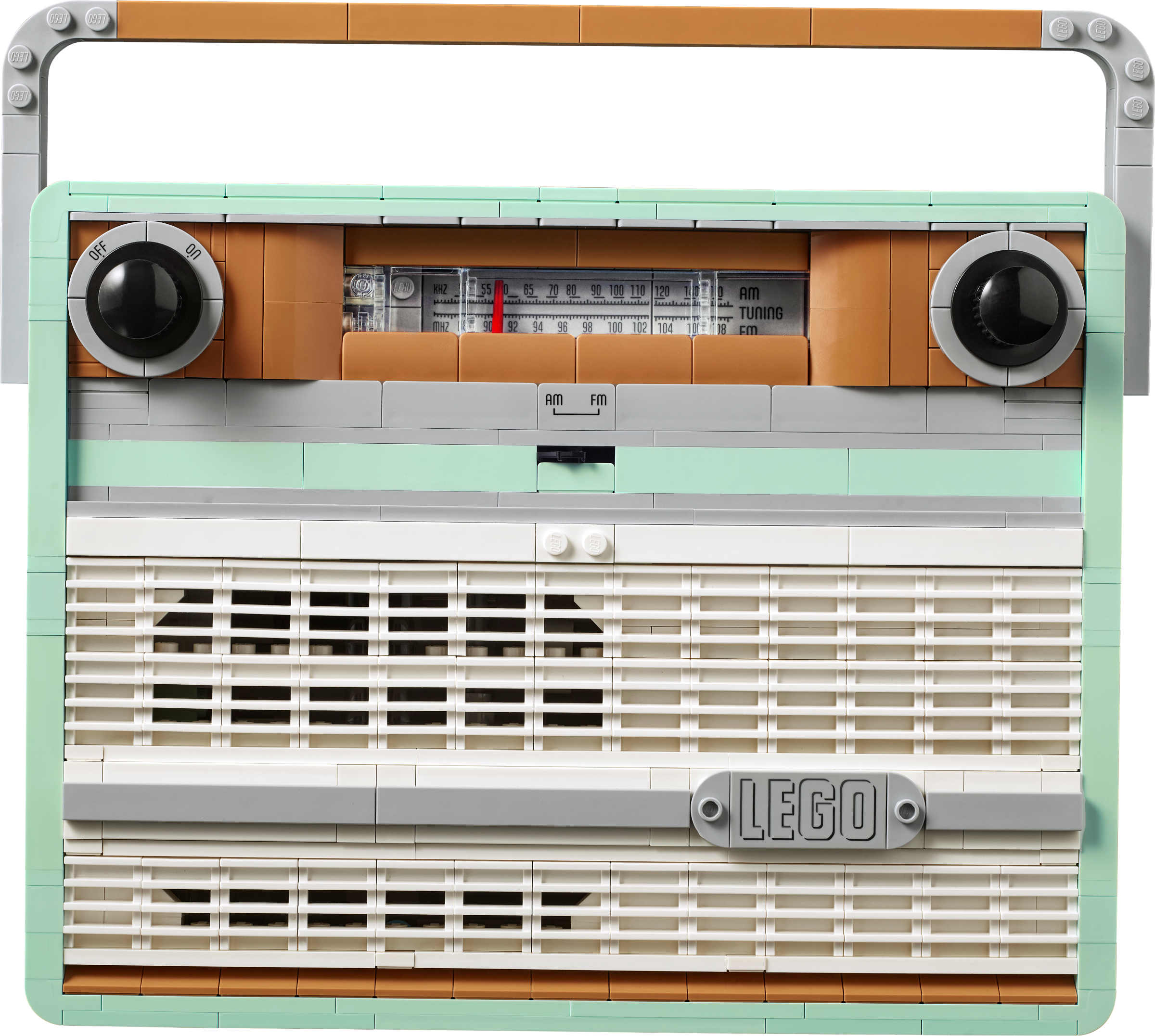 Enjoy an immersive building project with this LEGO® Icons Retro Radio (10334) set. Craft an ornamental replica of a 1970s vintage radio with a foldup handle and antenna, classic power and tuning dials and a sliding frequency switch. Rotate the dials to emit tuning signals and music snippets. Mount a smartphone in the rear compartment to relish your favourite tunes while bringing a cool retro vibe to your home or office.