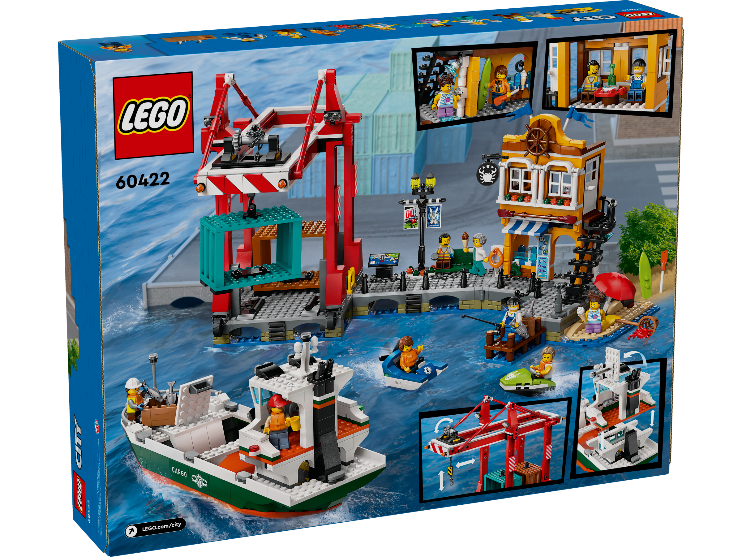Bring a cozy quayside vibe to kids’ play with this LEGO® City Seaside Harbor with Cargo Ship toy building set (60422) for ages 8 and up. Kids can use the toy crane to lift containers from the LEGO ship and enjoy the harbor’s tourist area complete with a store, seafood restaurant and beach. The set also includes a smaller toy boat and a water scooter, plus 8 minifigures for role play and storytelling.