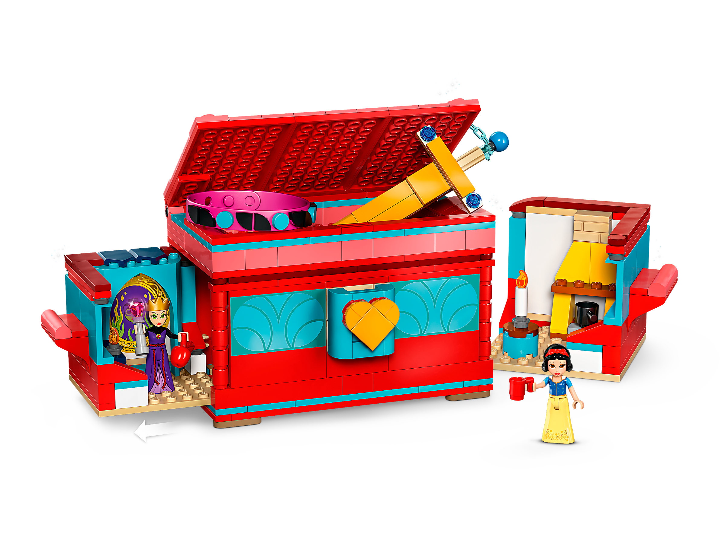Delight kids and Disney fans aged 6 with the premium gift of this LEGO® ǀ Disney Snow White’s Jewelry Box (43276) buildable toy playset. It features a box with an opening lid and handles on each side that pull open to reveal hidden rooms, a swordand chain lock, Snow White and the Evil Queen LEGO ǀ Disney mini-doll figures and a colorful bracelet with plenty of decorating elements to design, wear or share.