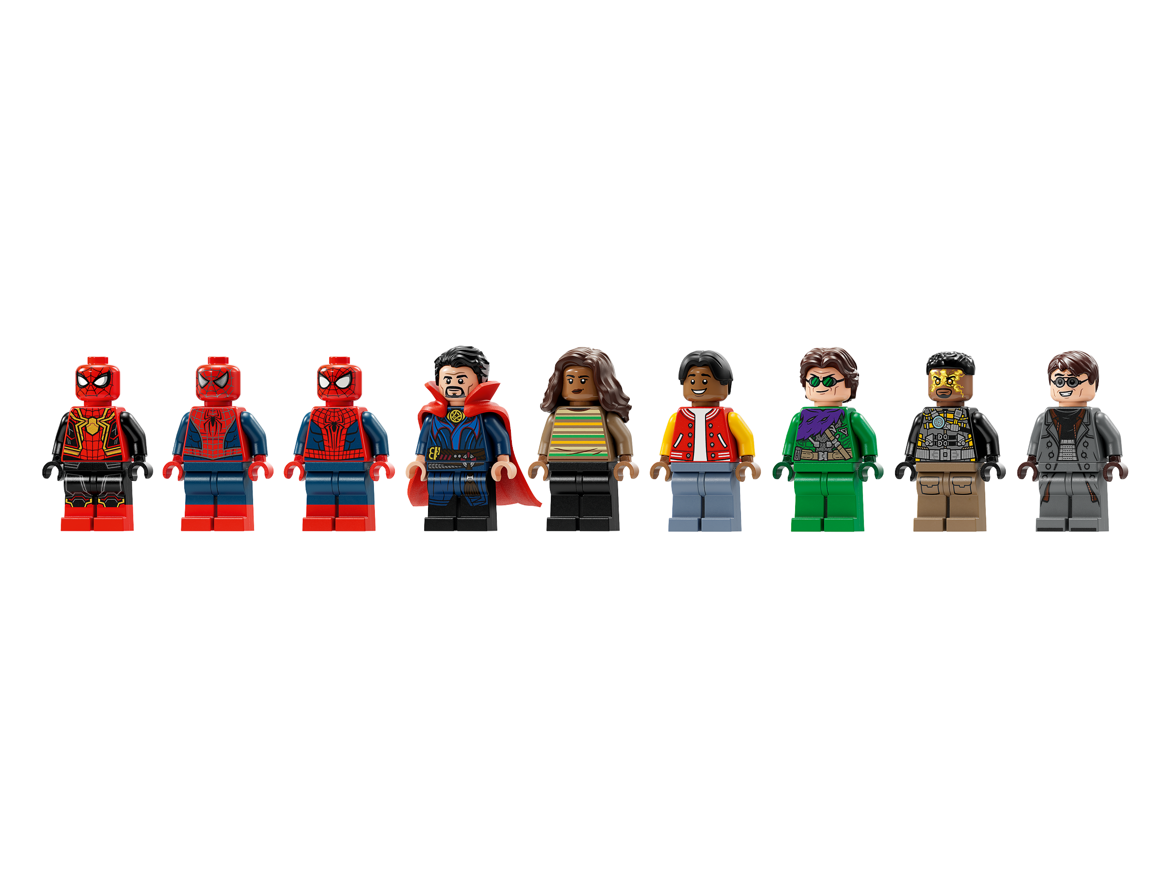 This 360-degree set includes an amazing assortment of LEGO Marvel minifigures, including 3 versions of Spider-Man: Friendly Neighborhood Spider-Man (Tobey Maguire), The Amazing Spider-Man (Andrew Garfield) and Spider-Man (Tom Holland). The other minifigures are Electro, Doctor Strange, Green Goblin, Ned, MJ and Doc Ock. Numerous features are included to maximise play-and-display possibilities, including 3 minifigure supports for midair action, a removable roof that reveals Sandman’s hand, a flip-open rear access to a portal and a soft web element to envelop minifigures. For added digital fun, builders can zoom in, rotate sets in 3D and track their progress using the fun, intuitive LEGO Builder app.