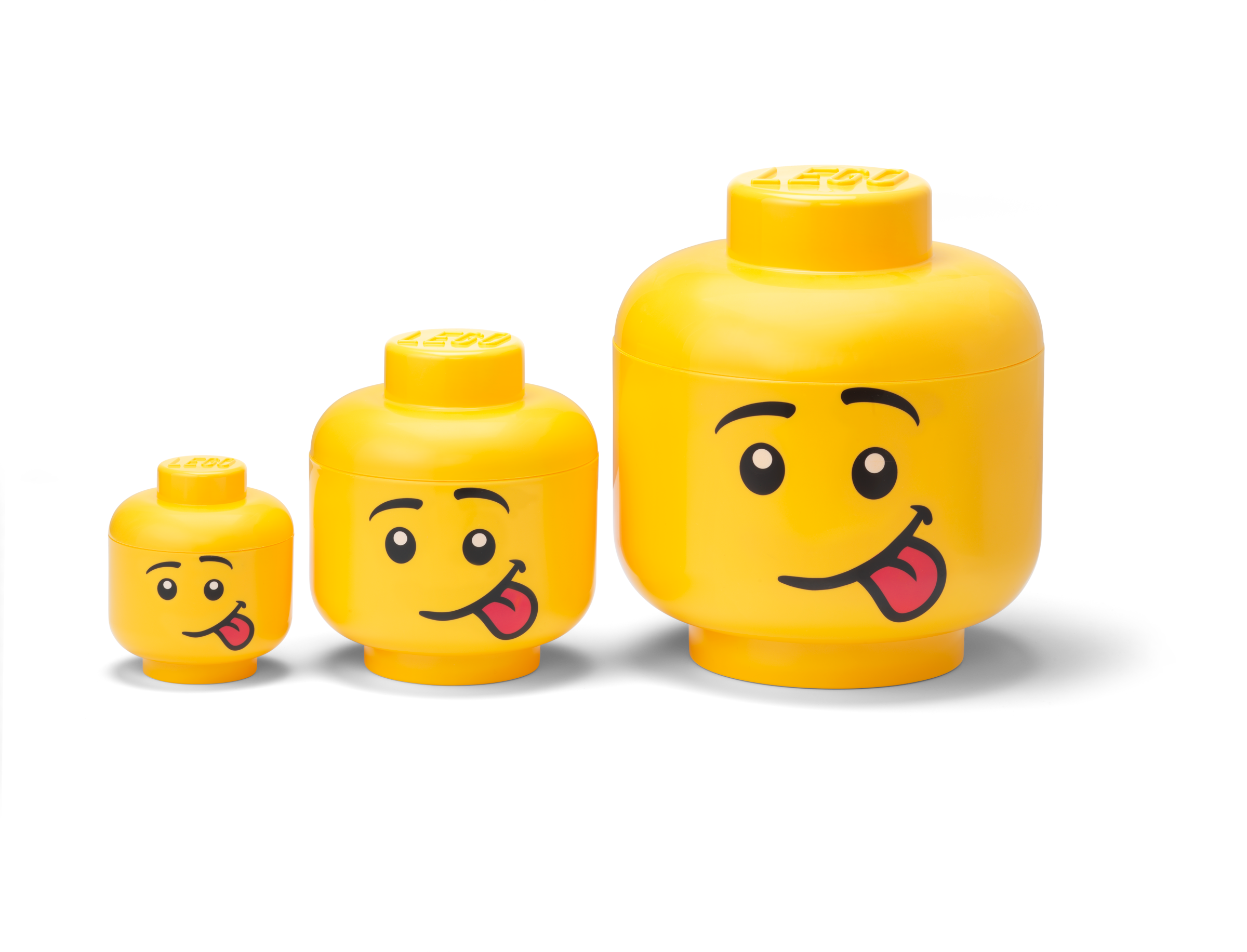 This bright yellow LEGO® Storage Head provides the perfect way for a LEGO fan to stow bricks, office utensils and any other small items. Made from durable plastic, this upscaled version of the familiar LEGO minifigure head, with a funny, tongue-out facial expression and a lift-off lid, provides a practical solution to everyday storage needs. A great way to add a cheeky touch to any room’s décor, this fun and colorful storage combines easily and effectively with other LEGO furnishings.