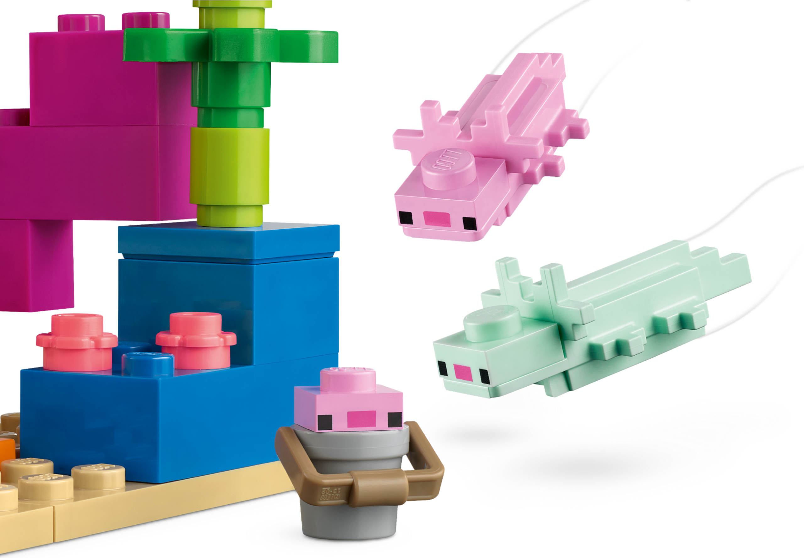 Treat Minecraft® players to hands-on underwater adventures featuring one of the game’s cutest creatures – the axolotl. LEGO® Minecraft The Axolotl House (21247) brings Minecraft’s creative construction and imaginative action into the real world for players aged 7 and up.