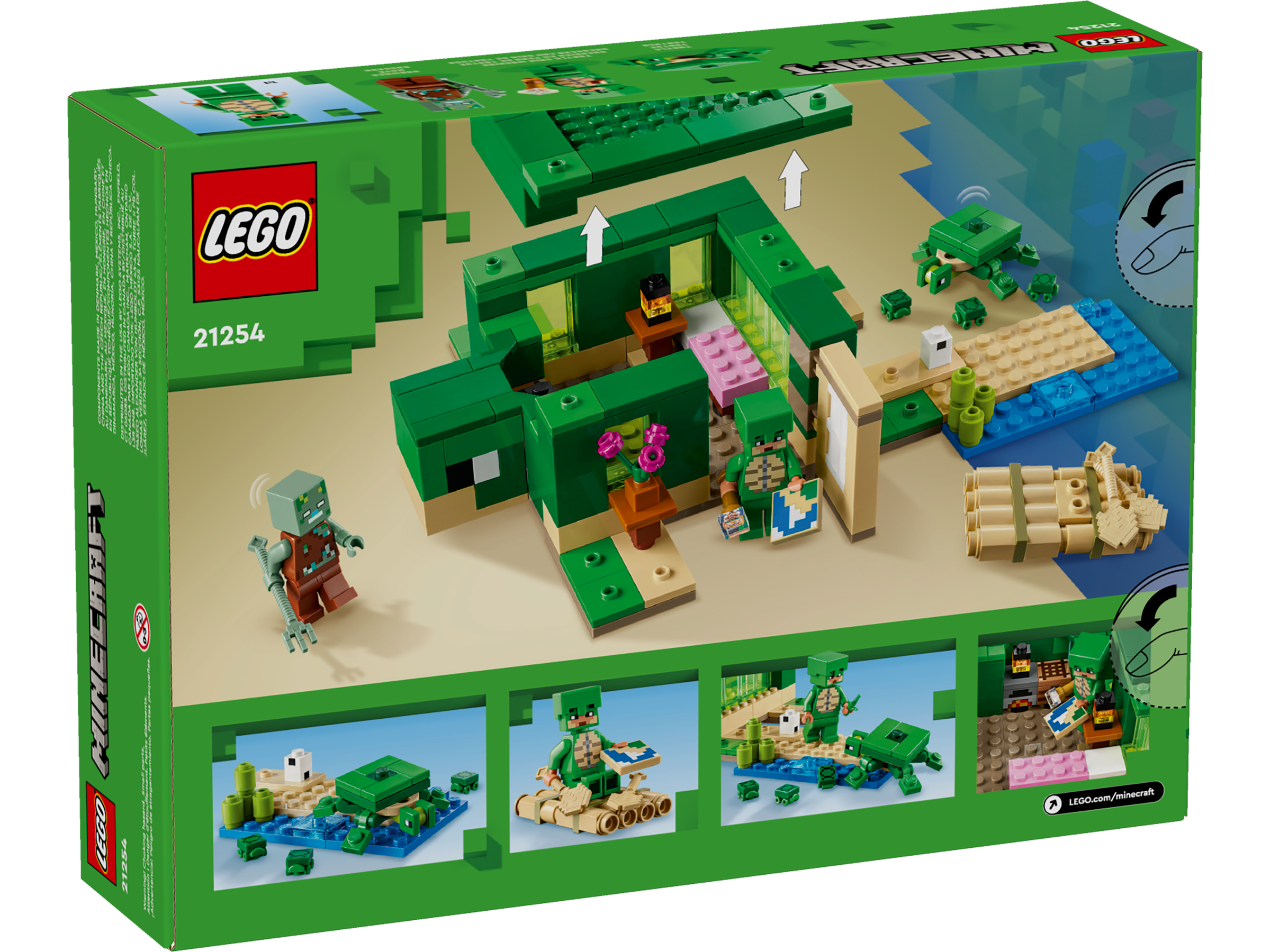 This model house shaped like a Minecraft® turtle is packed inside and out with Minecraft action and animal fun. With 3 iconic characters and a cool structure to build, the LEGO® Minecraft The Turtle Beach House (21254) set is a great gift idea for kids and Minecraft players aged 8 and up.